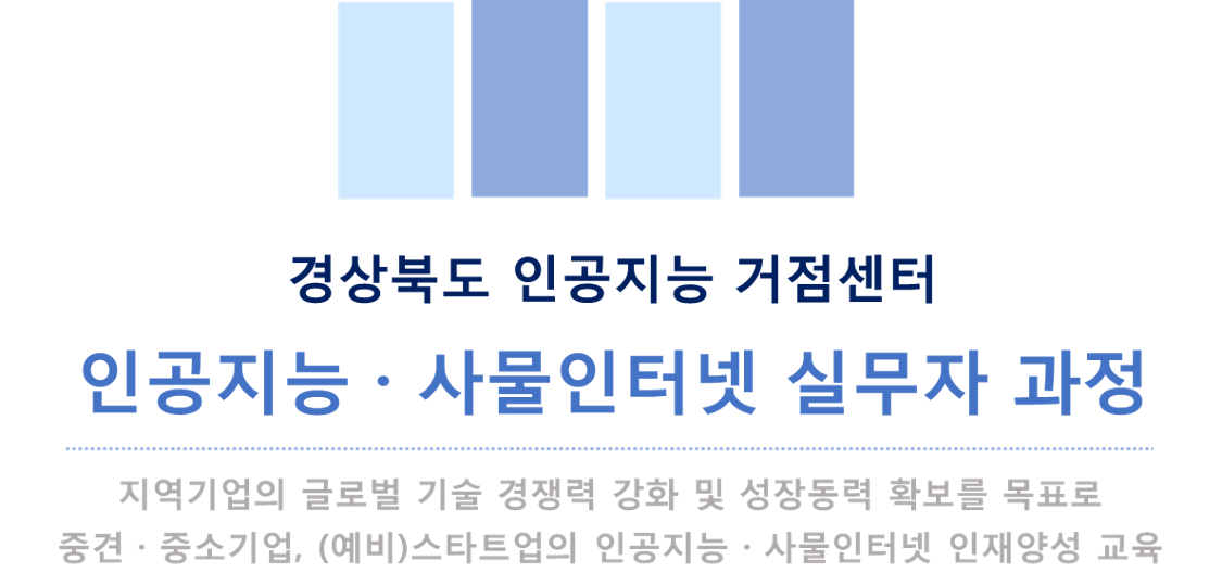 [경북 AI 거점센터] 인공지능 사물인터넷 실무자 과정 교육생 모집 2019.03.05 3353 파일 2019_실무자과정.png 2019_실무자과정2.png 2019_실무자과정3.png 2019_실무자과정4.png