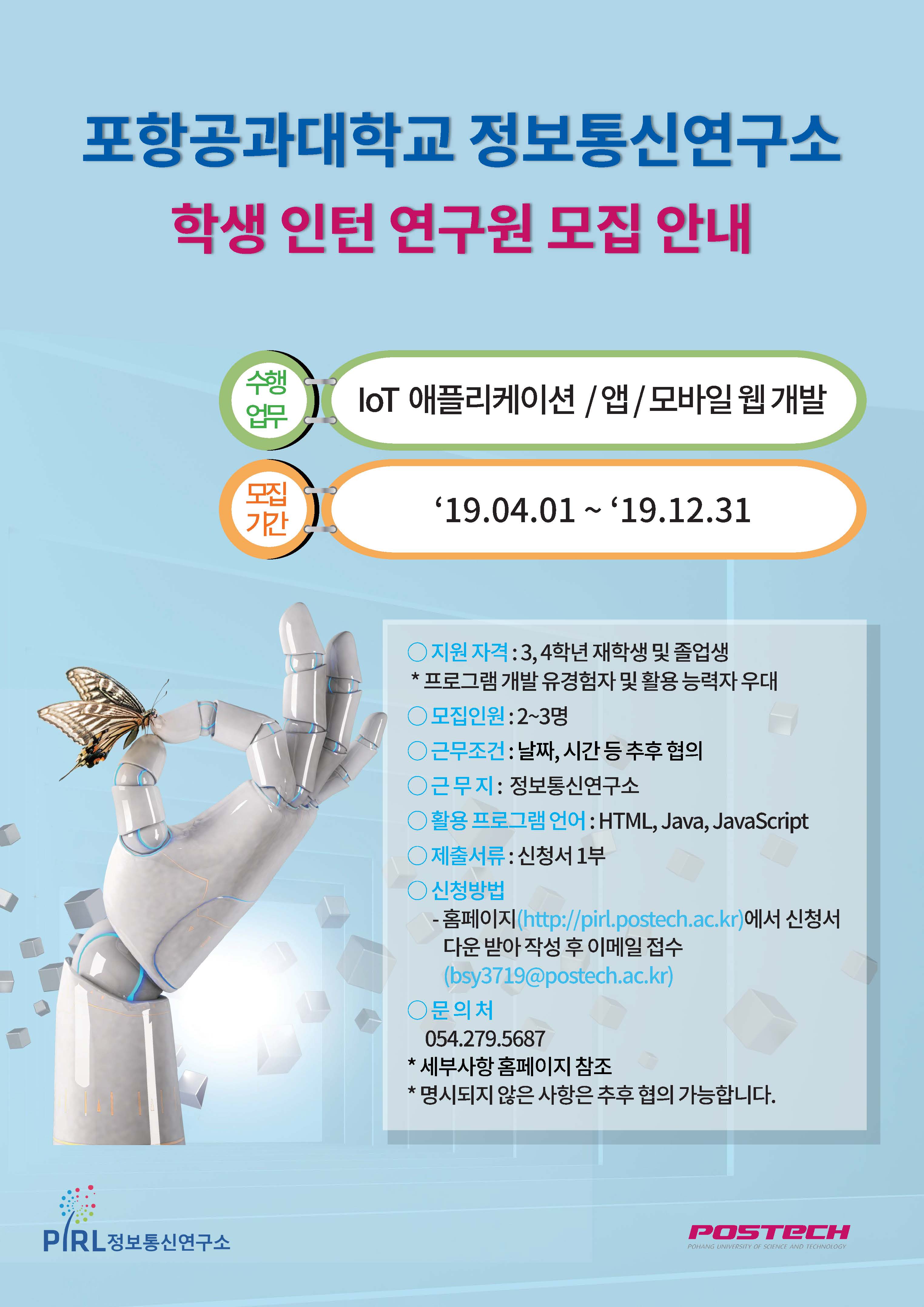 [인공지능연구원] 포항공과대학교 인공지능연구원 학생 인턴 연구원 모집 안내